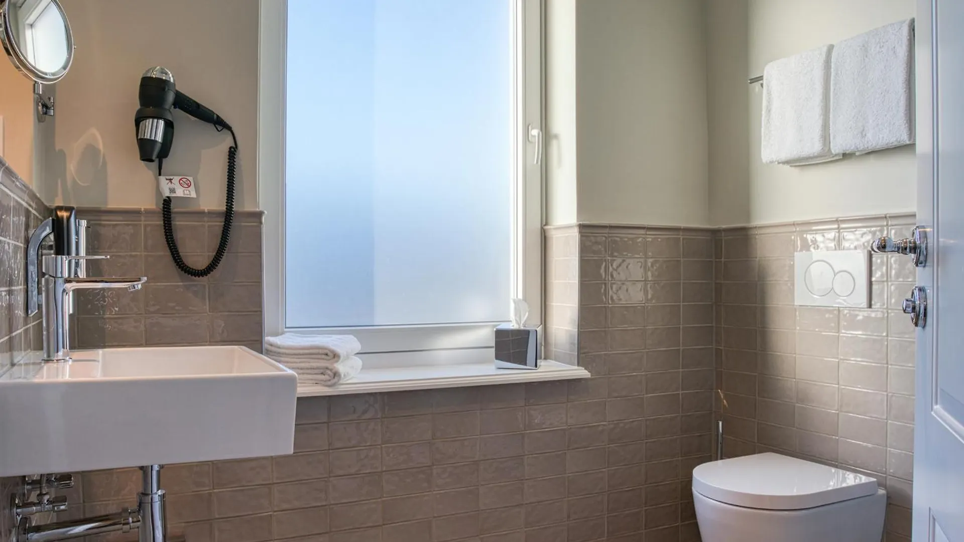 A separate toilet and a shower, along with hair dryers and towels, are also included in the bathrooms.